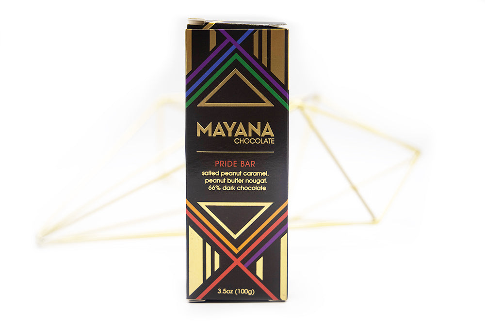 The Pride Bar is the perfect combination of salty and sweet. Layers of our decadent salted peanut caramel and rich peanut butter nougat meet and are covered in dark chocolate.